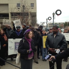 SPC joined other local groups to voice opposition to the failure of two Grand Juries to indict white police officers in the deaths of unarmed black men in recent months. On November 28 we joined the local chapter of the National Action Network (NAN) and the Alliance of Communities Transforming Syracuse (ACTS) in condemning the Grand Jury’s decision not to indict the white police officer who killed Michael Brown, an unarmed 18-year-old black man in Ferguson, MO. On December 5 we joined with NAN and the Center for Community Alternatives to again express our anger and disappointment that a Grand Jury failed to indict the white officer responsible for the death of Eric Garner, an unarmed black man in NYC. At Plowshares we gathered 150 signatures on our “Stop Police Targeting of Black People” petition addressed to Barack Obama and Eric Holder (see www.peacecouncil.net for the petition text).