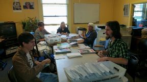 There’s a new face around SPC quite often these days. Zachary Field contacted us in late summer and offered himself as an intern. Since then, Zach has come in for 8-10 hours each week to help with both office and organizing tasks. Whether it’s stuffing envelopes at a mailing party or talking world politics, Zach is eager and on the spot. In addition, Zach will put in additional hours as an intern with CNY Working for a Just Peace in Palestine and Israel, a special position funded by a bequest from Joan Goldberg. One committee member wrote in a recent e-mail, “Just want to say how impressed I am with our new intern, Zach. He obviously has a lot of knowledge and interest in our subject and I feel he is a wonderful asset to our group and our work.” Thanks for being here, Zach!