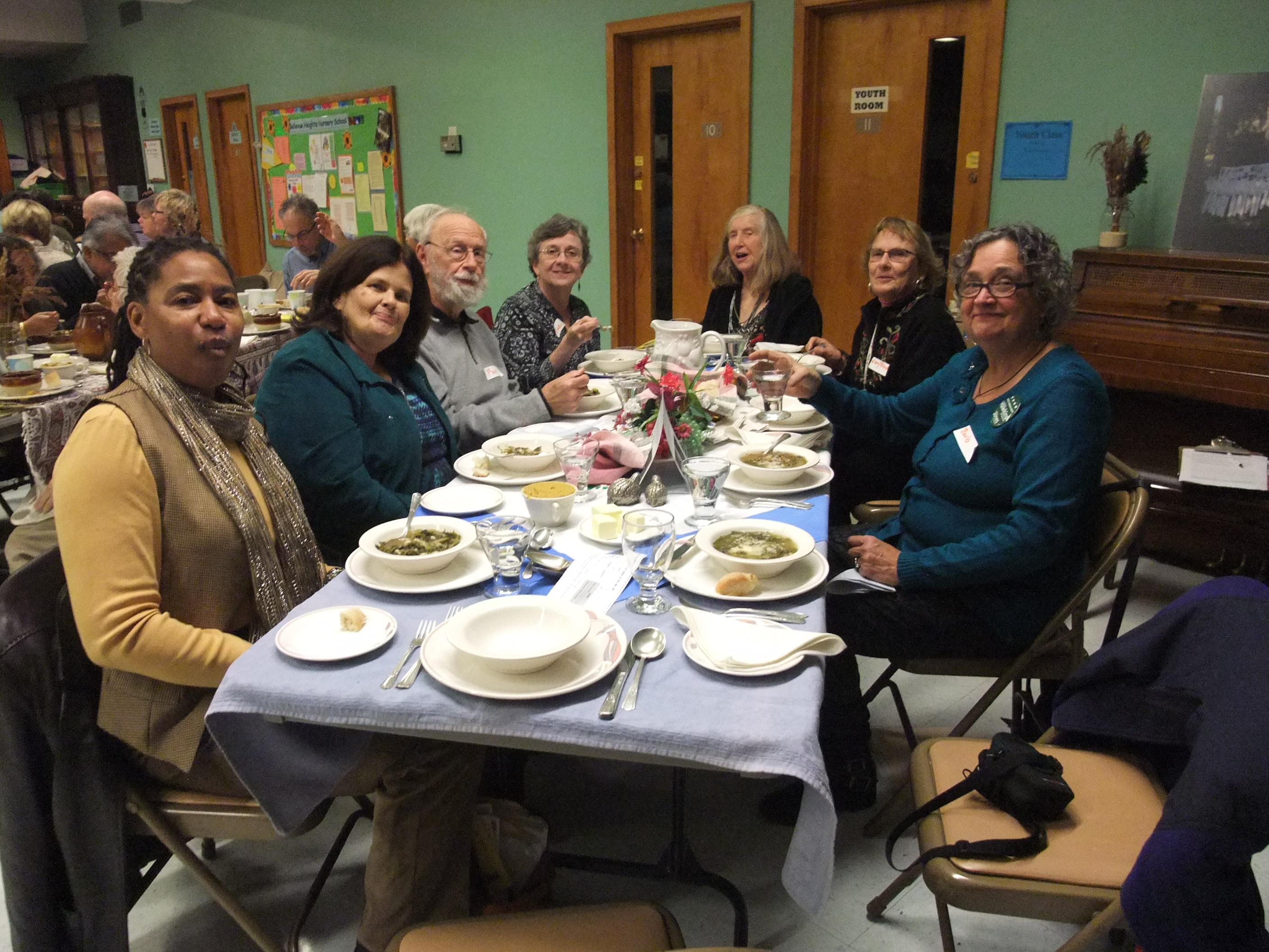 The Birthday Dinner is both a major educational event and a substantial annual fundraiser for the Peace Council. We’re happy to say the event was successful in raising over $3,000 to support ongoing organizing for peace and social justice. Thank you so much to everyone who made the dinner a success, especially the speakers Janis and Paula; the cooks Marie Summerwood and Carole Resnick (menu coordination), Leslie Bliss, Jess Maxwell, Phil McCarten, Donna Muhs-McCarten, Kim McCoy Mike Miller, Dan Noble and children, Julienne Oldfield and Rose Viviano; Nancy Hallock (table host coordinator) and the table hosts; the coordinating committee of Barbara Humphrey, Amelia Lefevre and Crystal Lau; the advertisers in the written program; and everyone else who attended and volunteered their time and services.